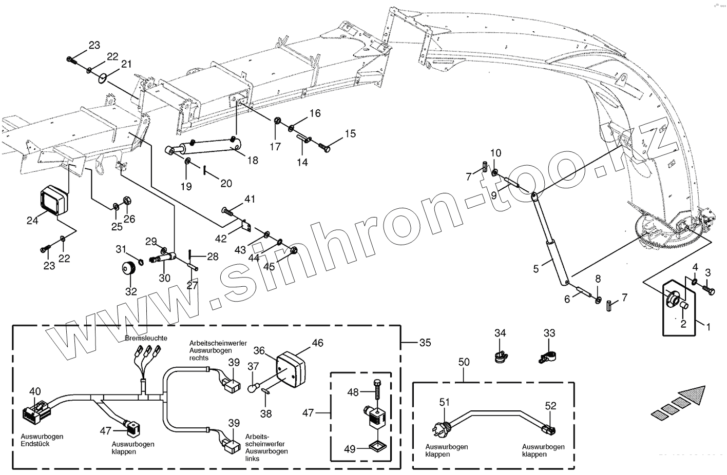 Каталог запасных частей к технике: KRONE BIG-X-500. Upper discharge chute-mounting parts 14-row