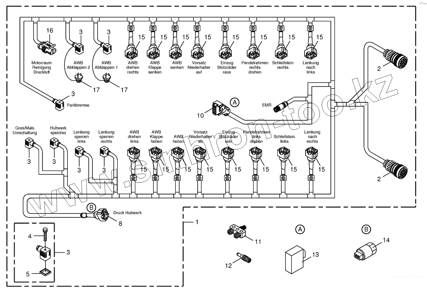 Каталог запасных частей к технике: KRONE BIG-X-500. Wiring Harness-valve block