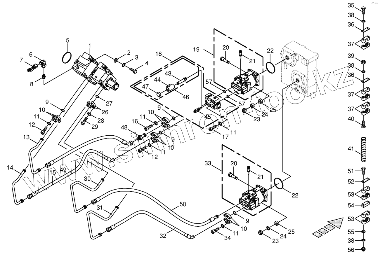 Каталог запасных частей к технике: KRONE BIG-X-500. Hydraulics-front attachment/feed rollers