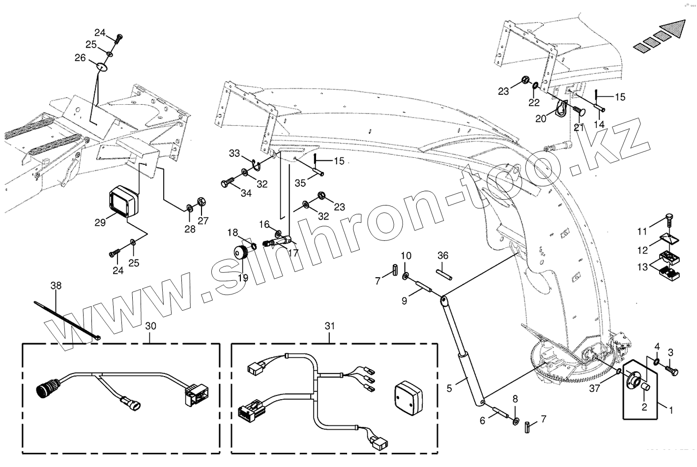 Каталог запасных частей к технике: KRONE BIG-X-500. Upper discharge chute-mounting parts