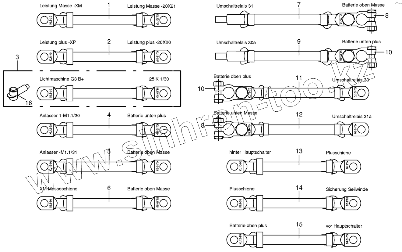 Каталог запасных частей к технике: KRONE BIG-X-500. Battery and ground cable