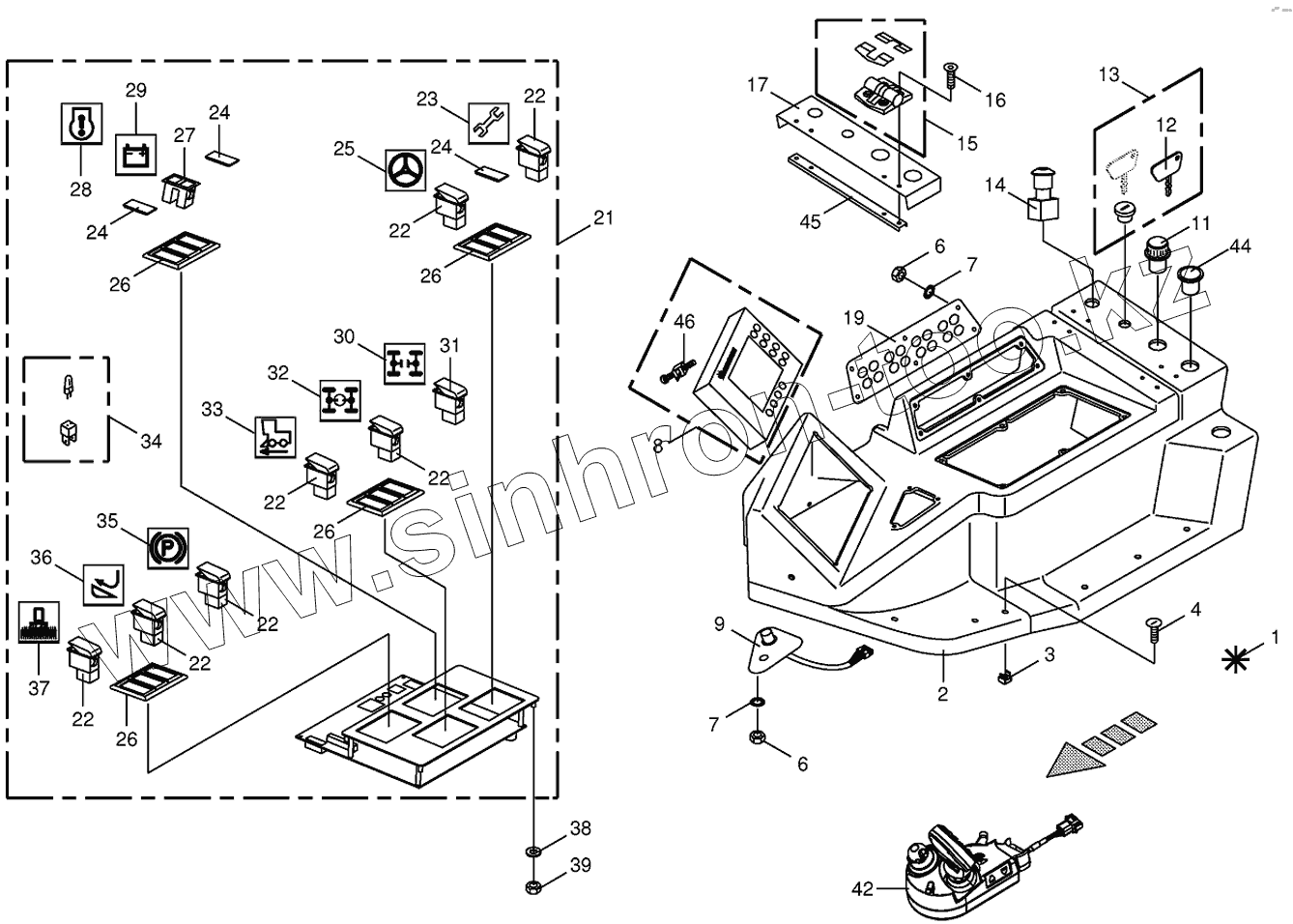 Каталог запасных частей к технике: KRONE BIG-X-500. Control box mounting parts-top