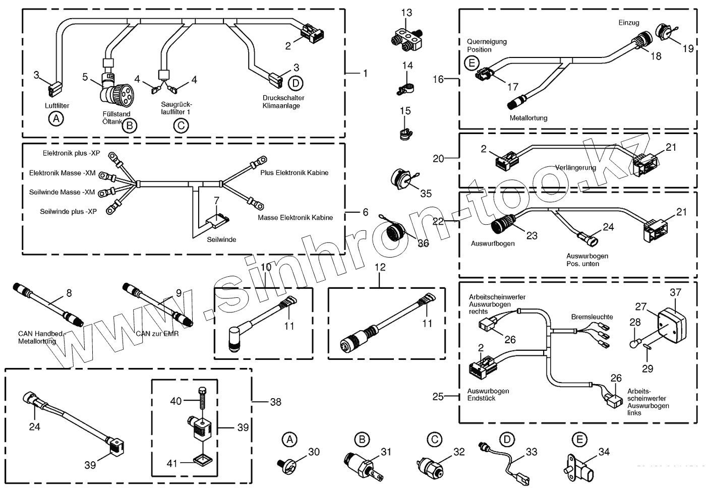 Каталог запасных частей к технике: KRONE BIG-X-500. Several wiring looms