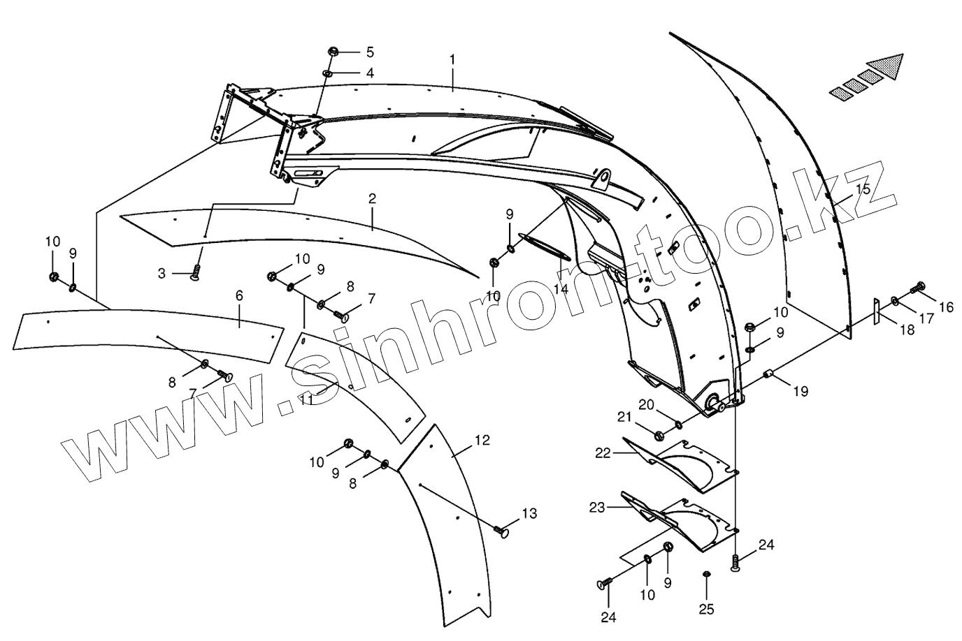 Каталог запасных частей к технике: KRONE BIG-X-500. Upper discharge chute with wear plates