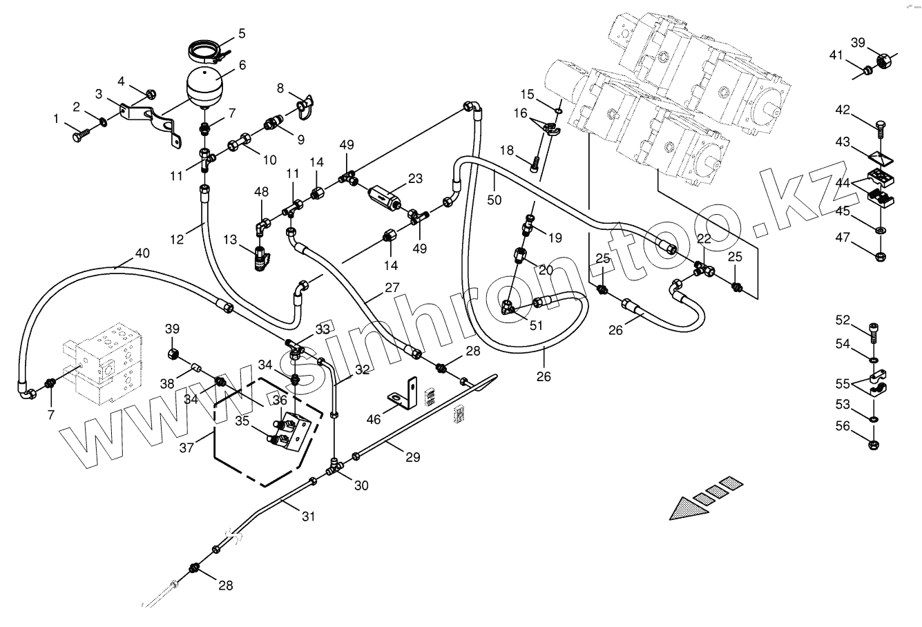 Каталог запасных частей к технике: KRONE BiG X 500. Charge pressure lines - back