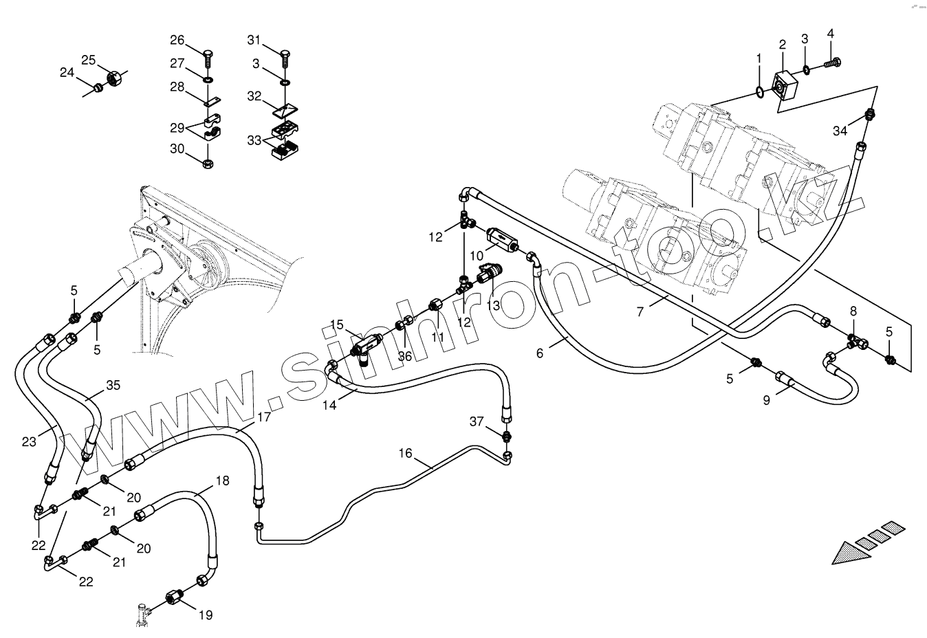 Каталог запасных частей к технике: KRONE BiG X 500. Charge pressure lines - back