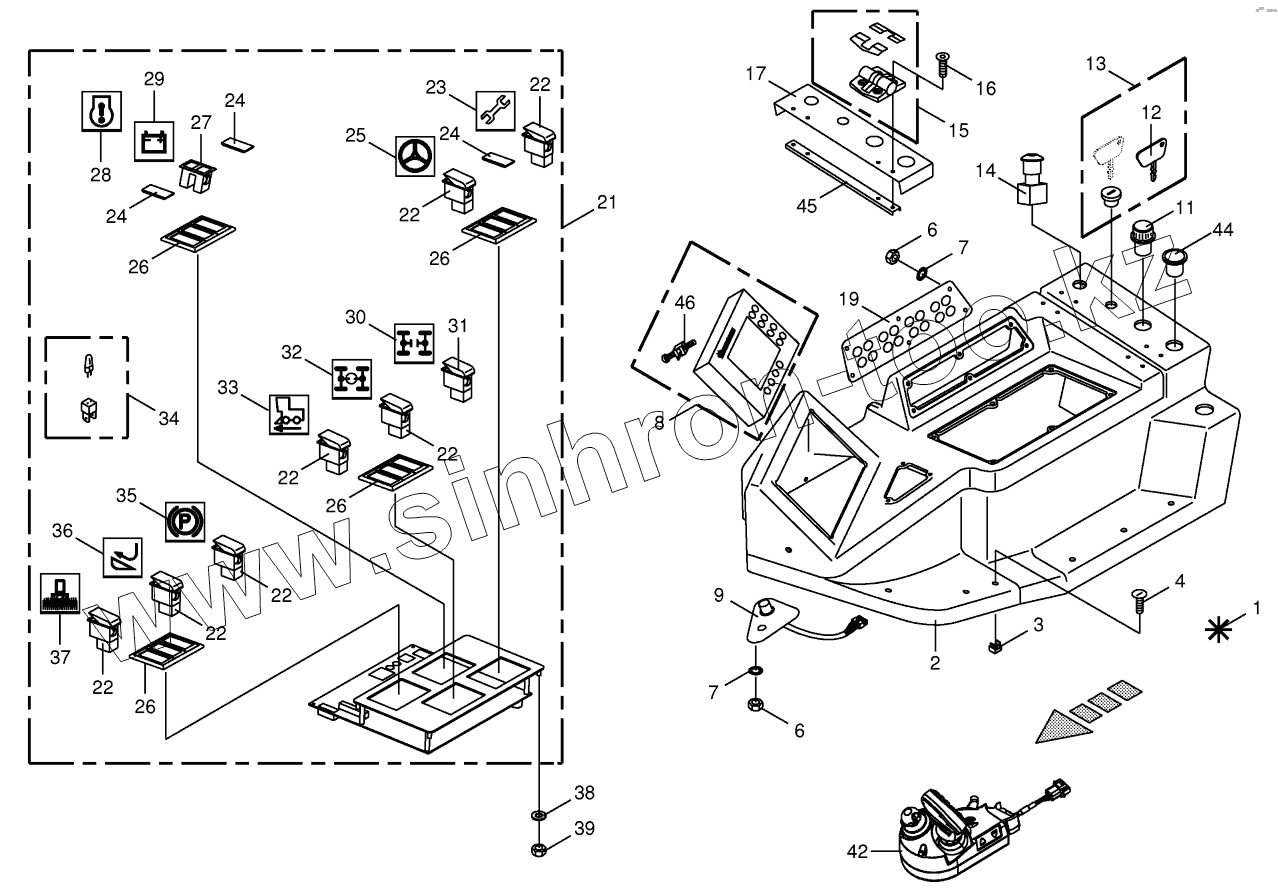 Каталог запасных частей к технике: KRONE BiG X 500. Control box mounting parts -top