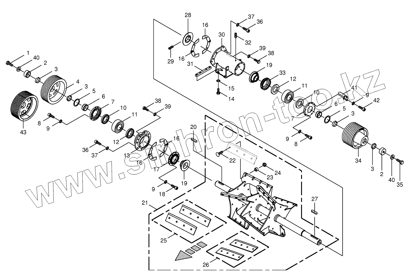 Каталог запасных частей к технике: KRONE BiG X 500. Discharge accelerator housinge -spring-mounted