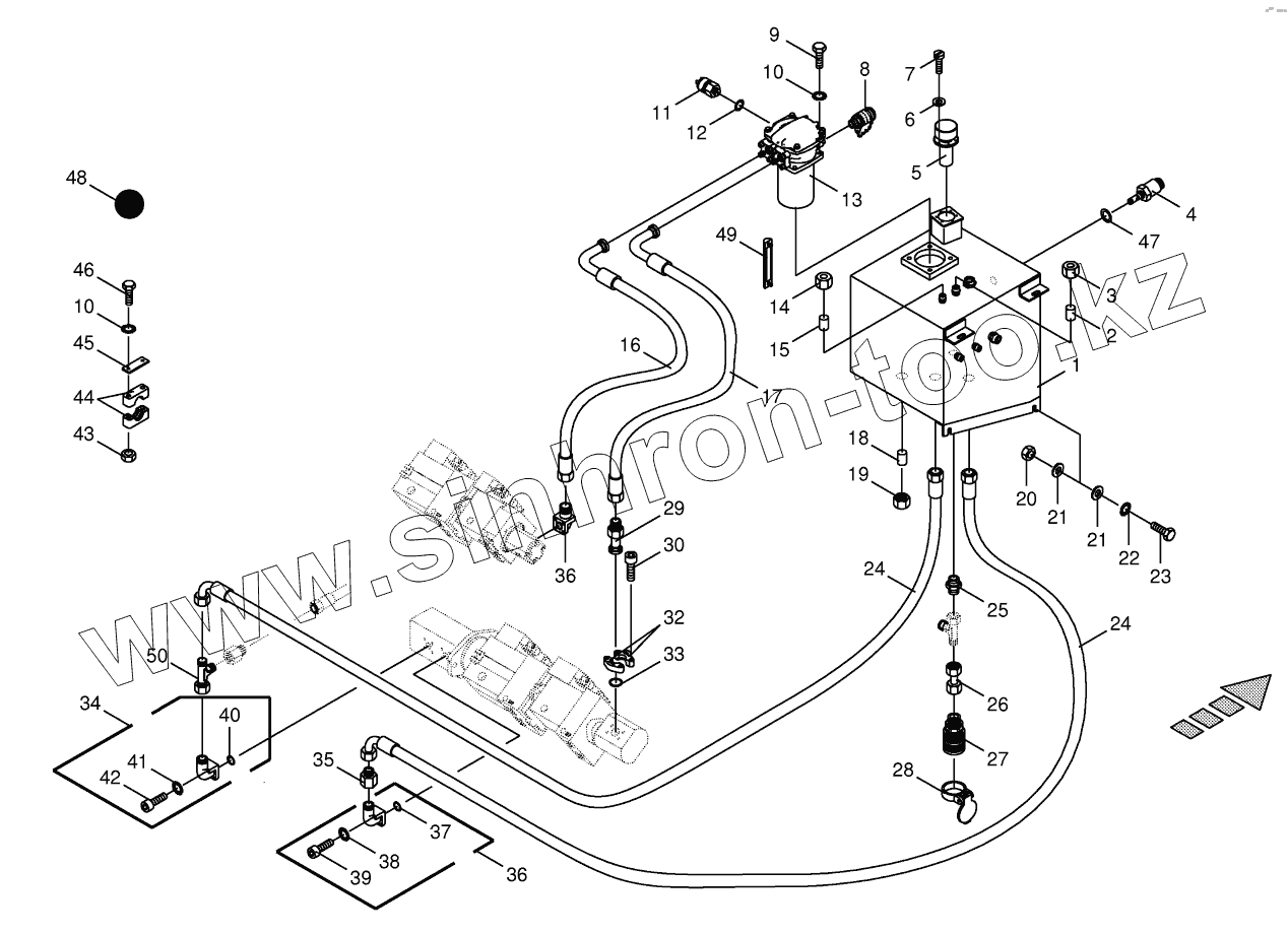 Каталог запасных частей к технике: KRONE BiG X 500. Hydraulic tank / suction lines