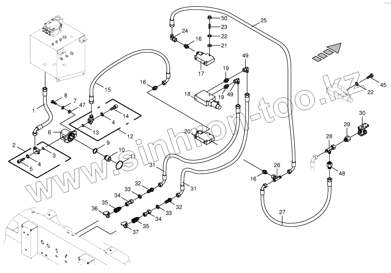 Каталог запасных частей к технике: KRONE BiG X 500. Hydraulics - additive connection back