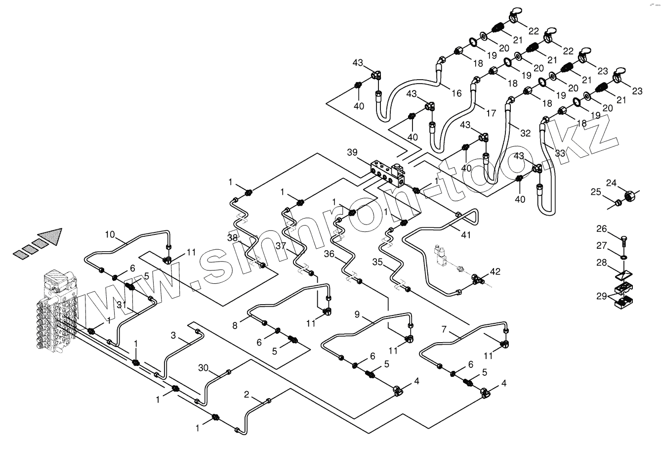 Каталог запасных частей к технике: KRONE BiG X 500. Hydraulics - front attachment