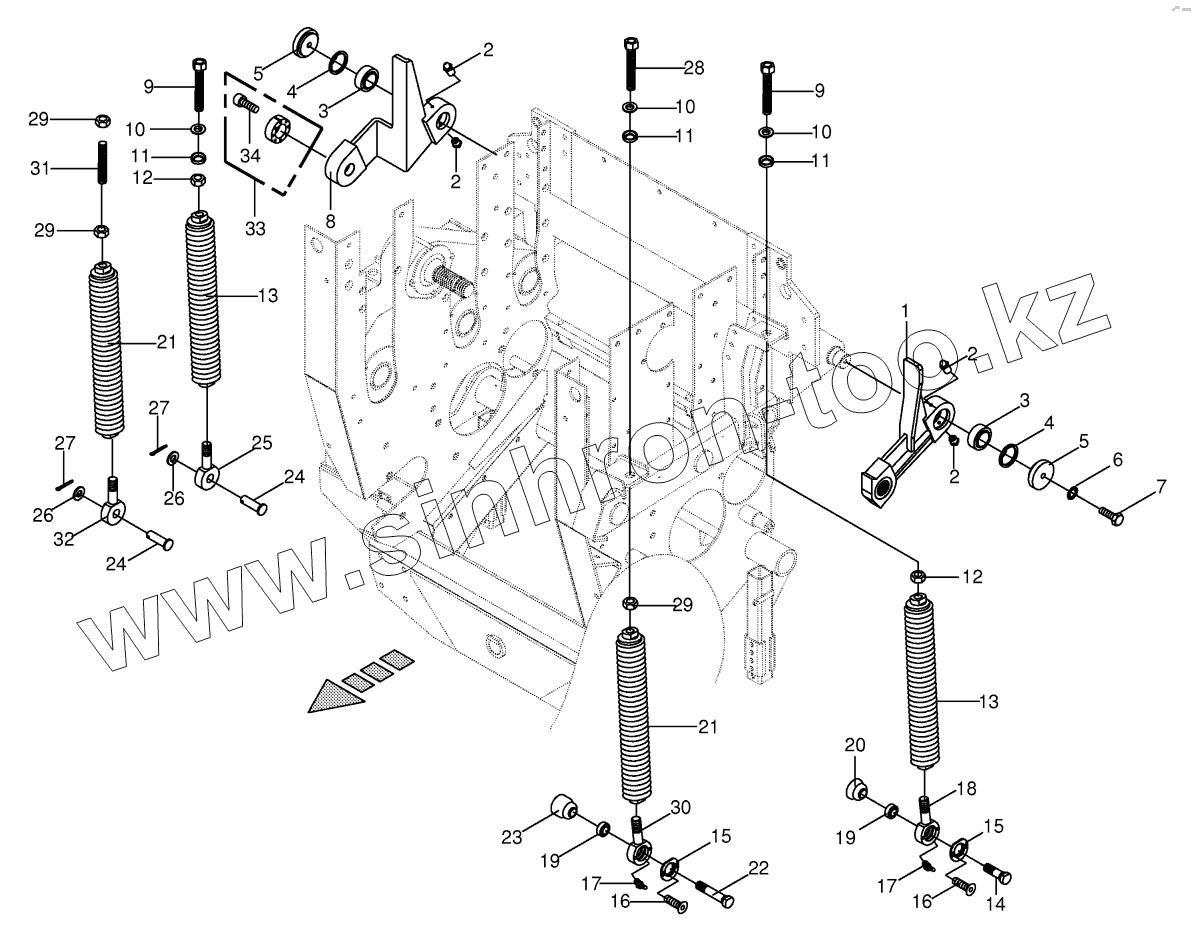 Каталог запасных частей к технике: KRONE BiG X 500. Oscillating levers/Tension spring