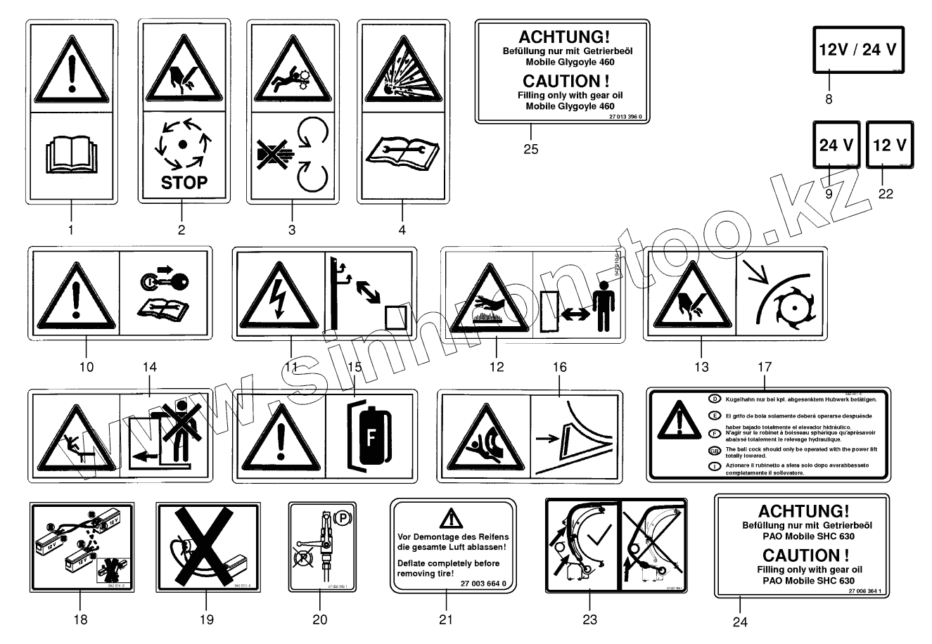 Каталог запасных частей к технике: KRONE BiG X 500. Warning signs