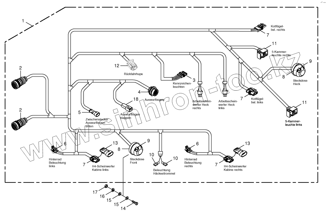 Каталог запасных частей к технике: KRONE BiG X 500. Wiring Harness - lighting