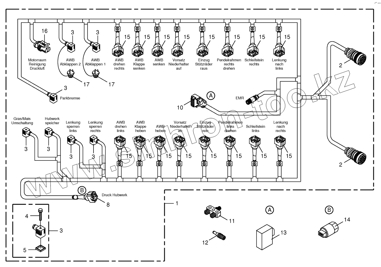 Каталог запасных частей к технике: KRONE BiG X 500. Wiring Harness - valve block