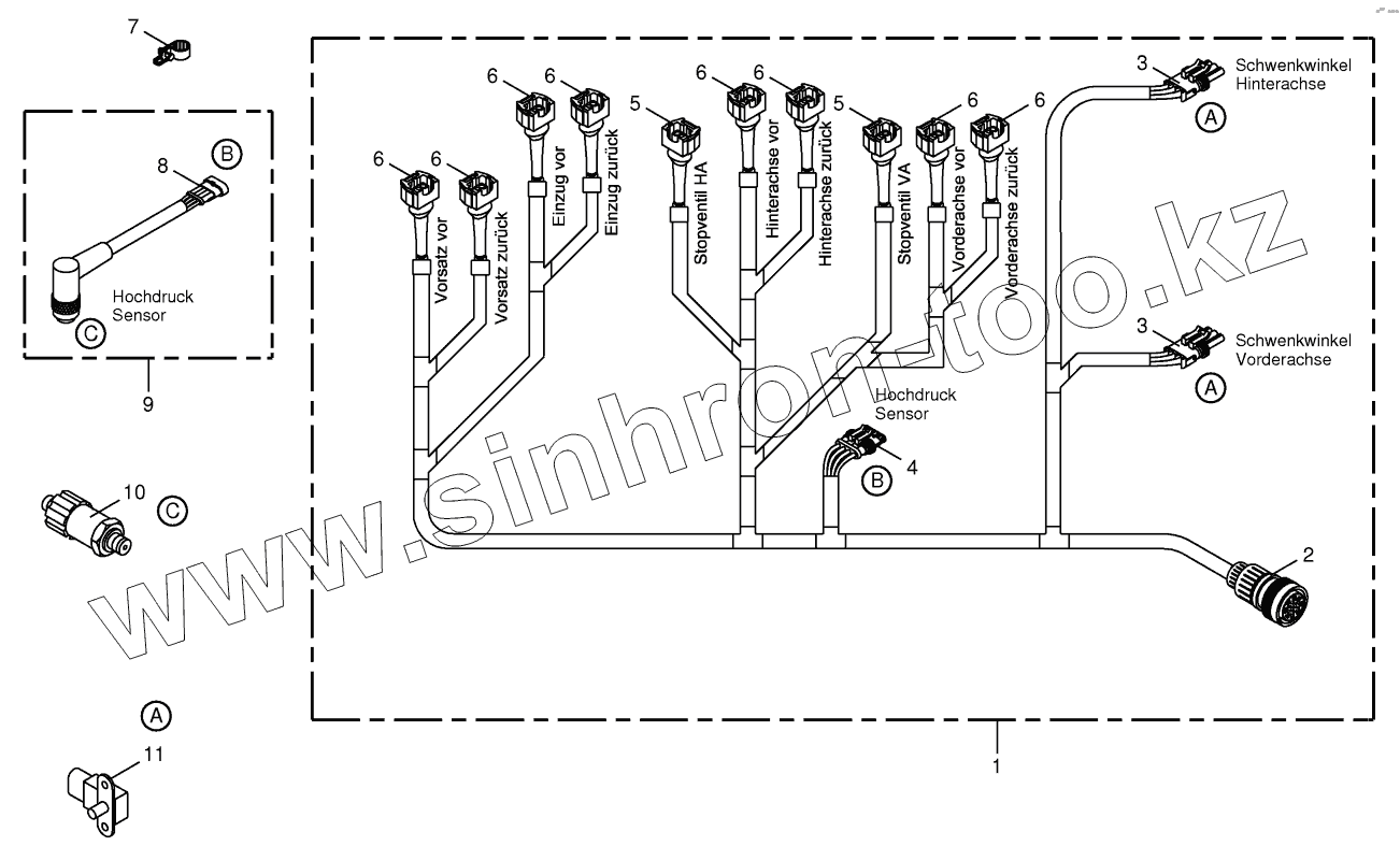 Каталог запасных частей к технике: KRONE BiG X 500. Wiring loom - hydraulic pumps