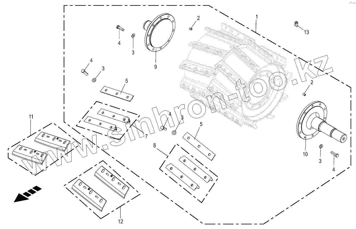 Каталог запасных частей к технике: KRONE BIG-X-530. Chopping drum - 20 Knifes