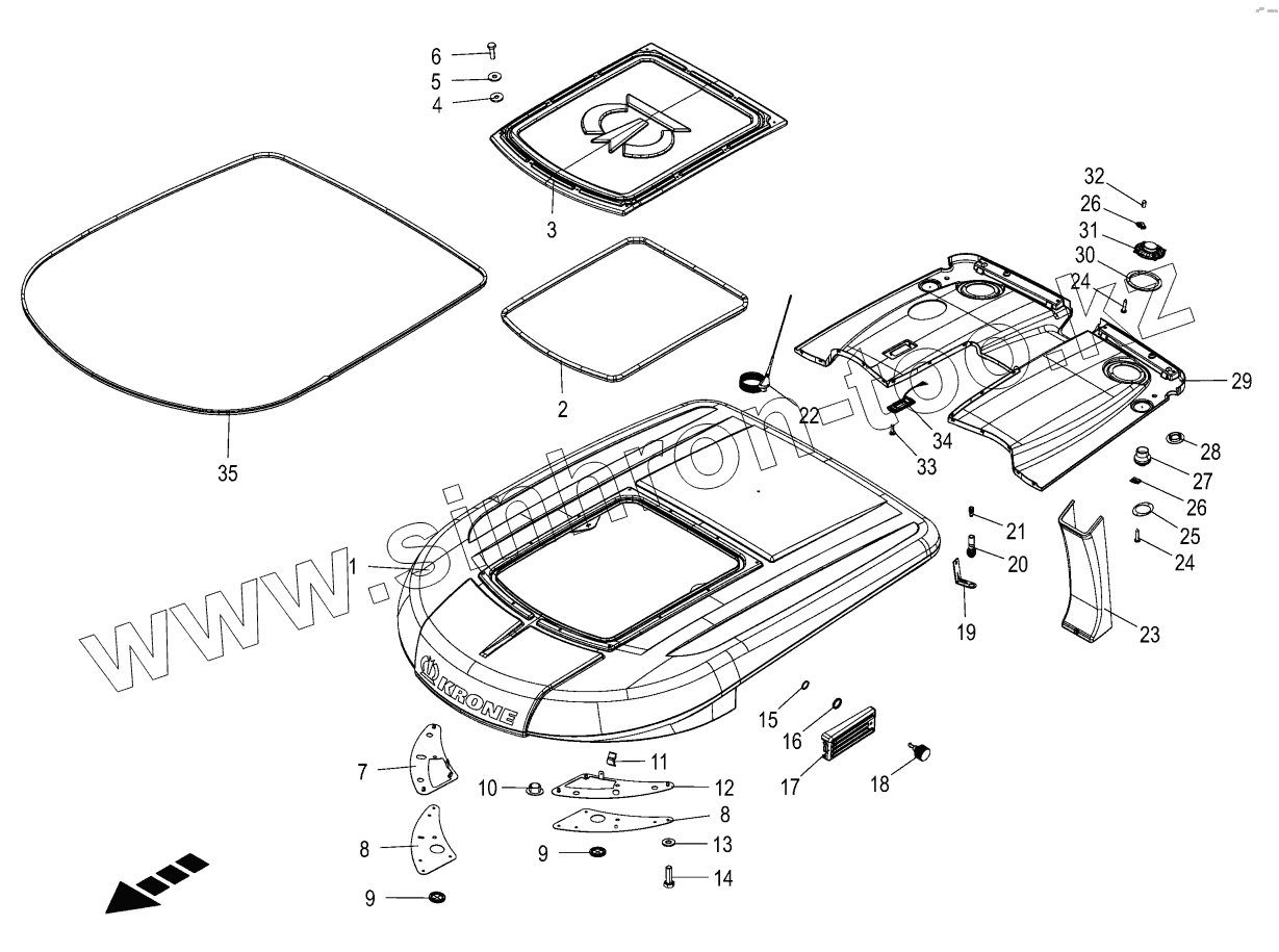 Каталог запасных частей к технике: KRONE BIG-X-580. Cab - roof