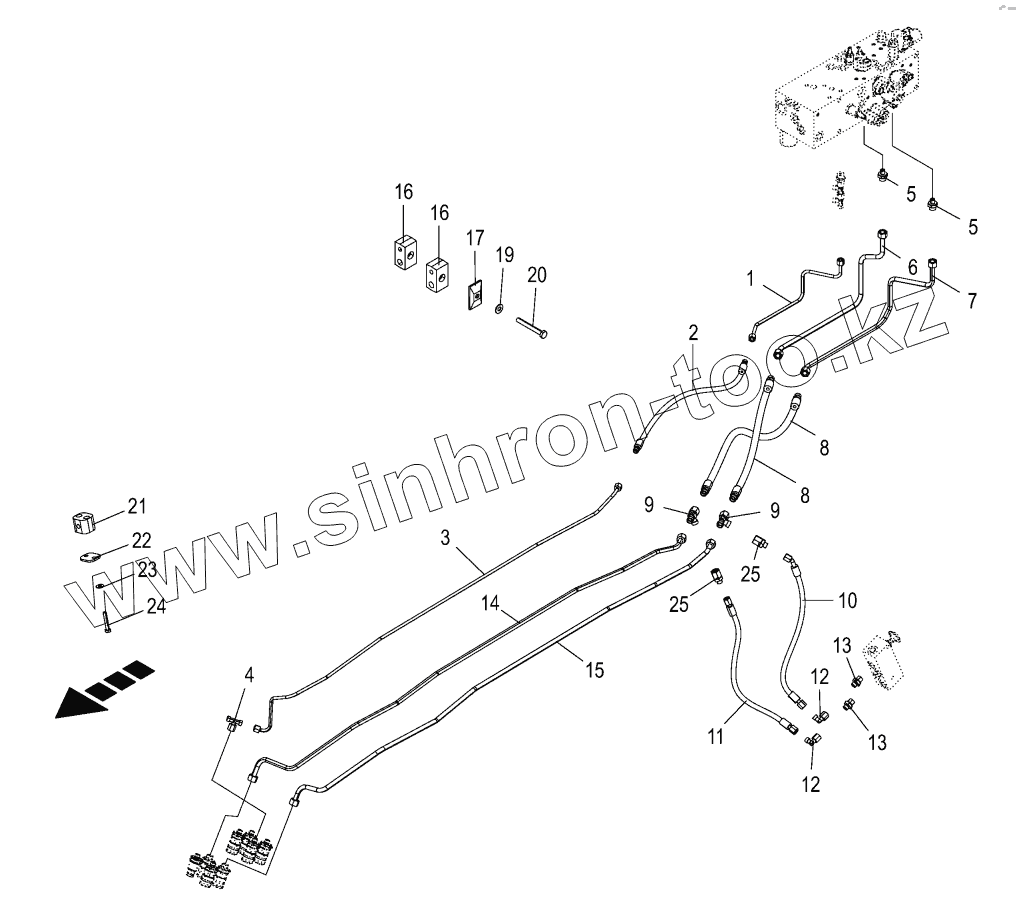 Каталог запасных частей к технике: KRONE BIG-X-580. Hydraulics - pressure lines - front attachment
