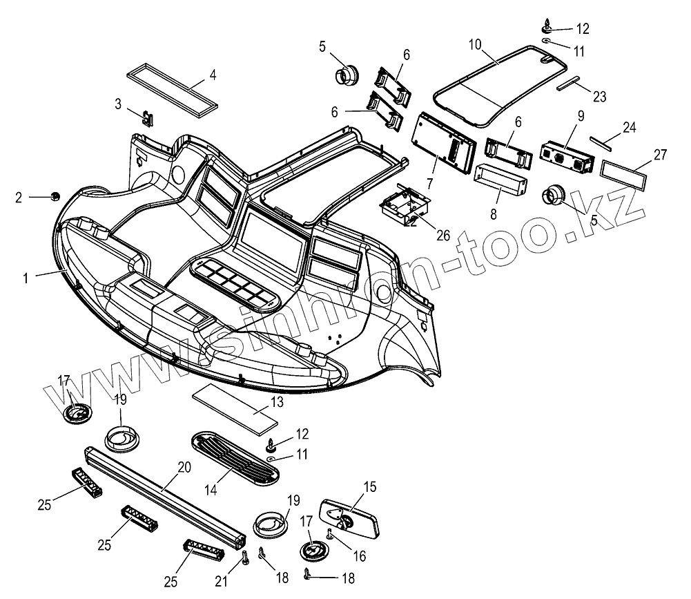 Каталог запасных частей к технике: KRONE BIG-X-580. Cab - control panel (roof)