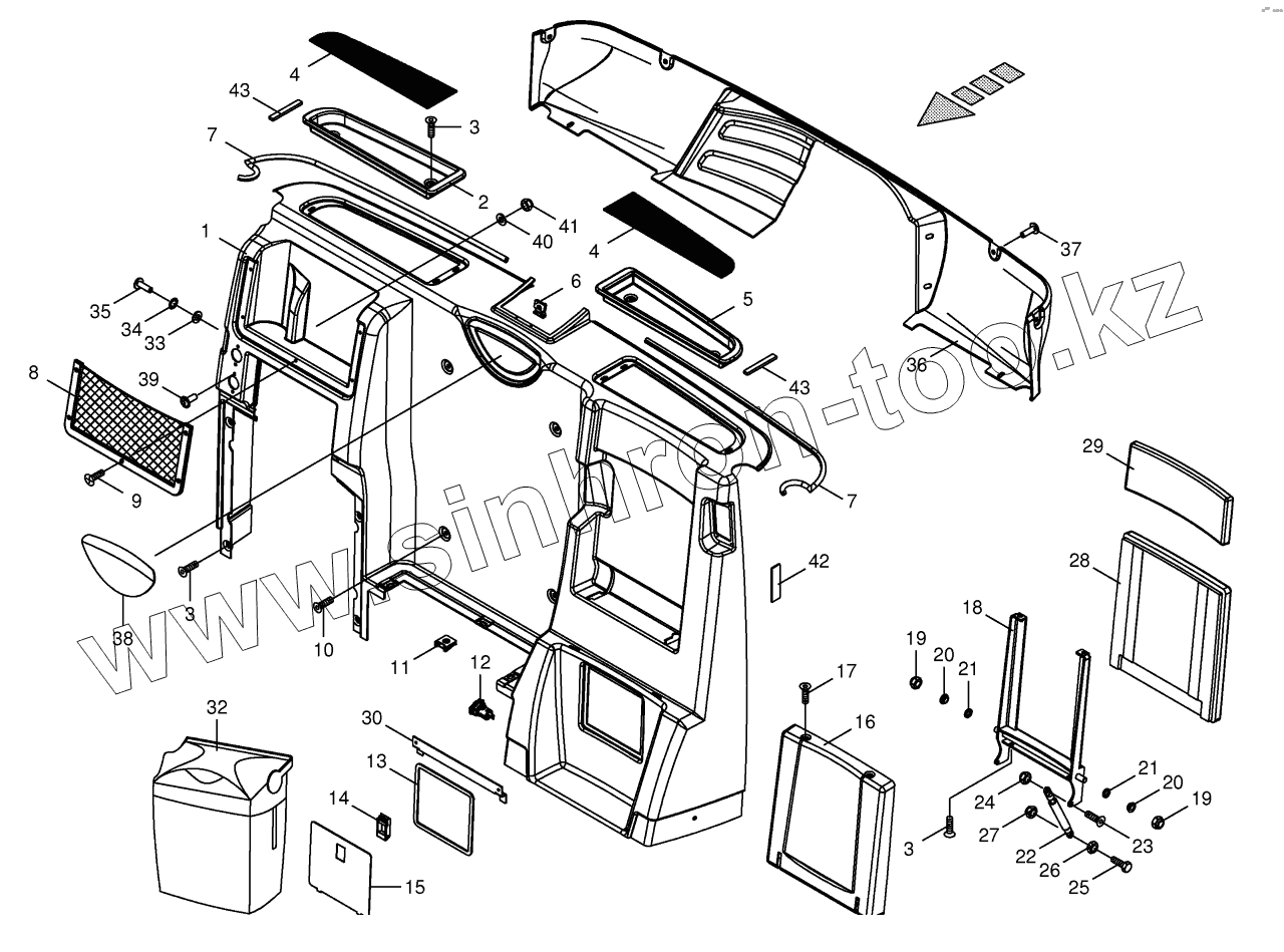 Каталог запасных частей к технике: KRONE BIG-X-600. Cab - rear covering / passenger seat