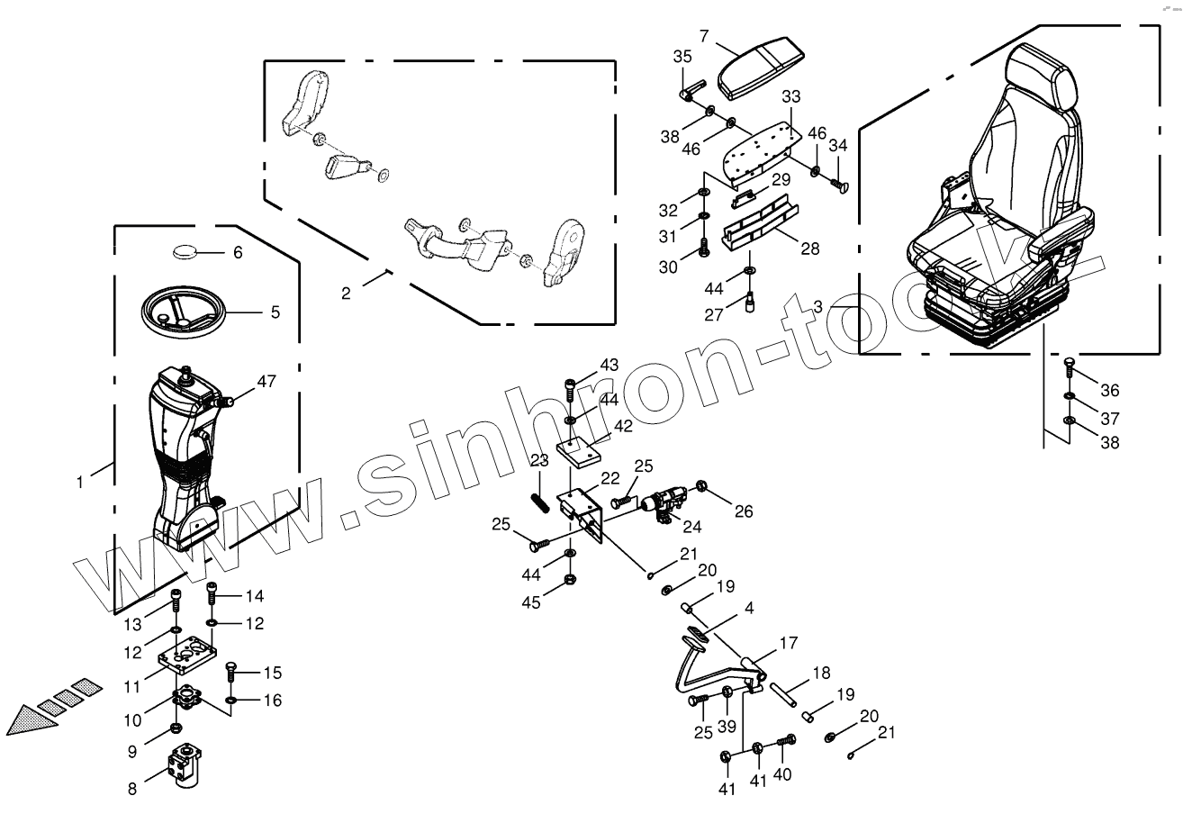Каталог запасных частей к технике: KRONE BIG-X-600. Steering columm