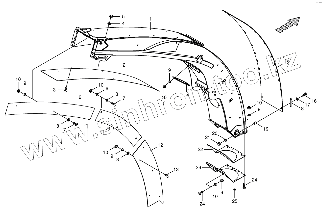 Каталог запасных частей к технике: KRONE BIG-X-600. Upper discharge chute with wear plates