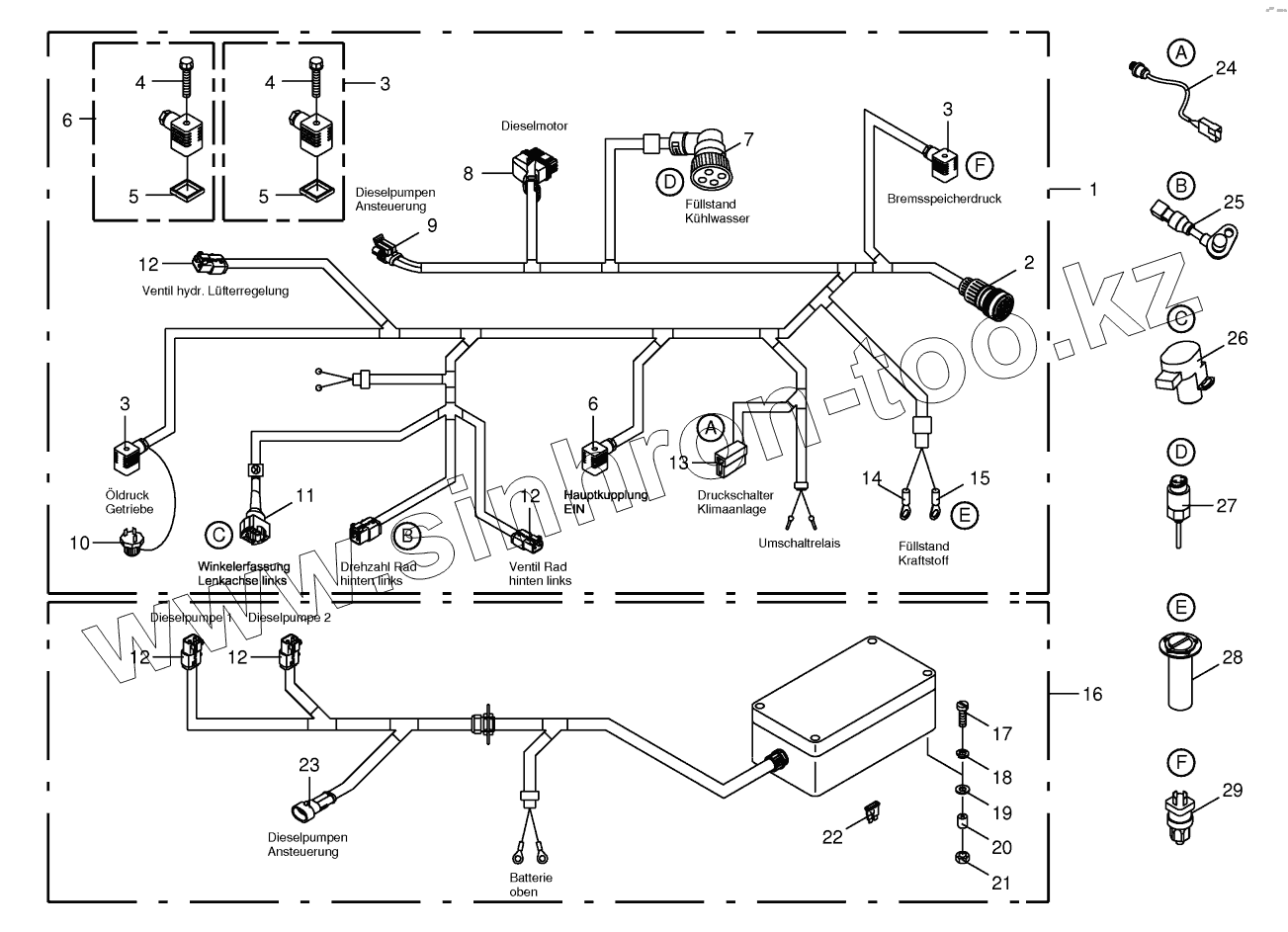 Каталог запасных частей к технике: KRONE BIG-X-600. Wiring Harness - engine / diesel pumps