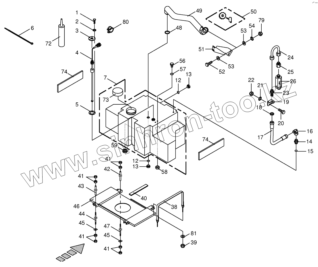 Каталог запасных частей к технике: KRONE BIG-X-600. Additional tank for silage agent system