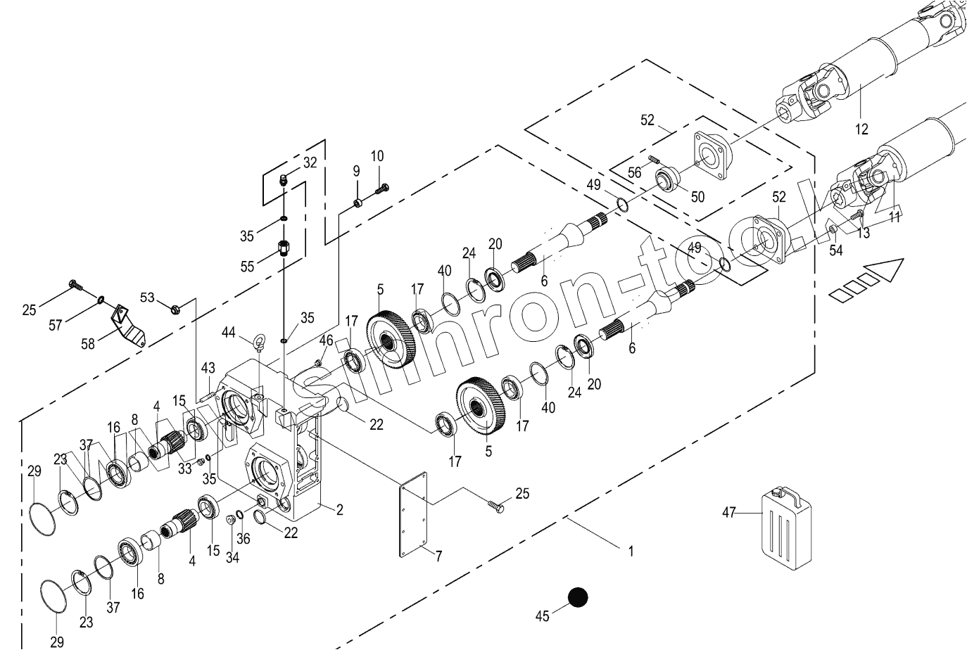 Каталог запасных частей к технике: KRONE BIG-X-600. Auxiliary gearbox / Drive