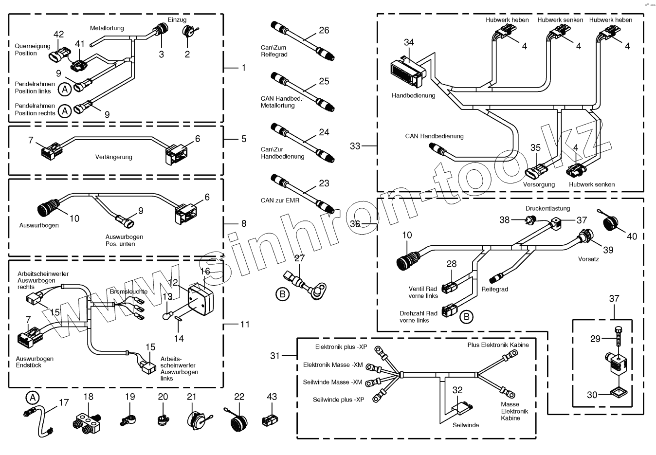 Каталог запасных частей к технике: KRONE BIG-X-600. Several wiring looms