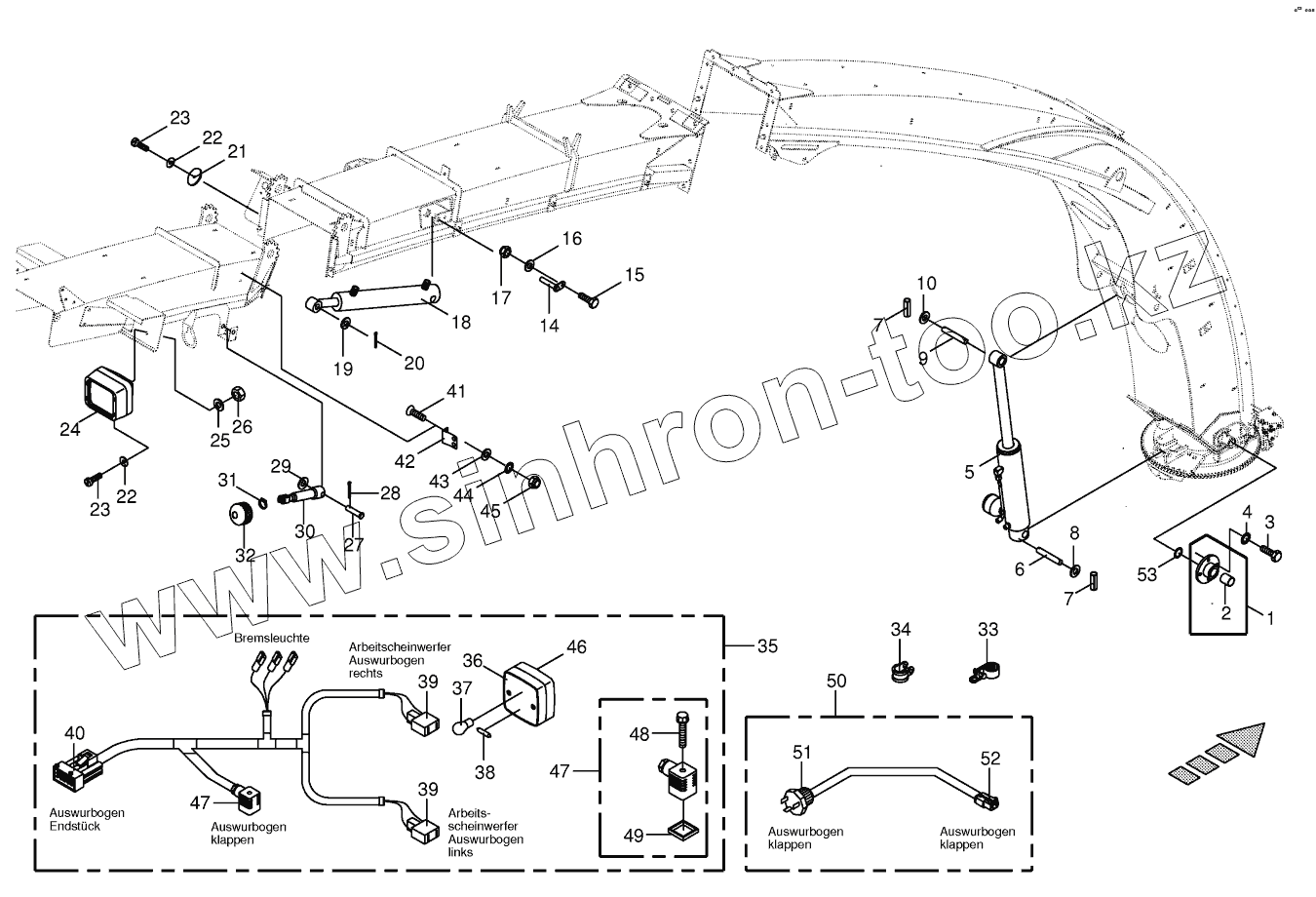 Каталог запасных частей к технике: KRONE BIG-X-600. Upper discharge chute - mounting parts 14-row