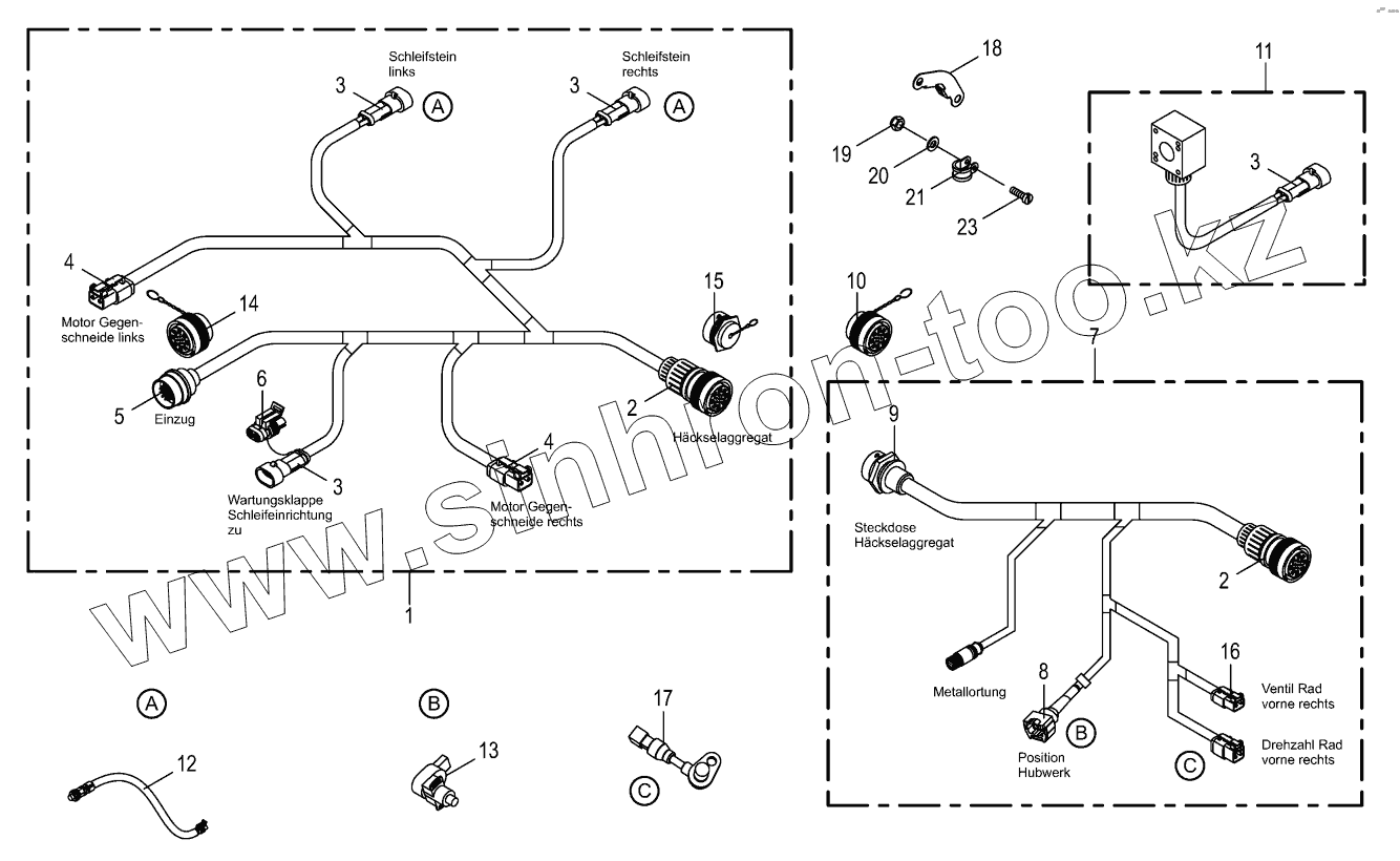 Каталог запасных частей к технике: KRONE BIG-X-600. Wiring Harness-chopping aggregate/backlash-alarm
