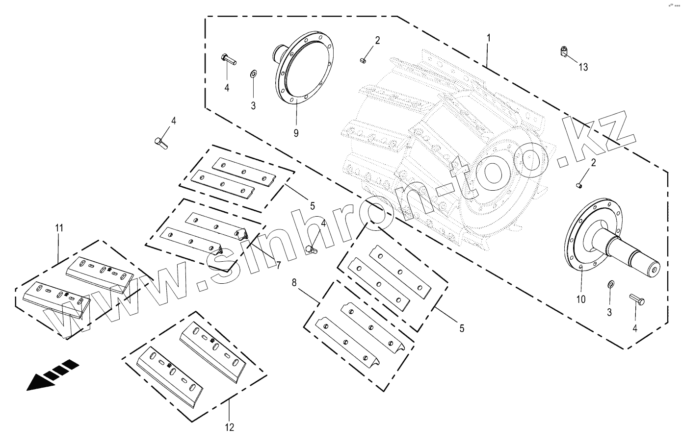 Каталог запасных частей к технике: KRONE BIG-X-630. Chopping drum - 20 Knifes