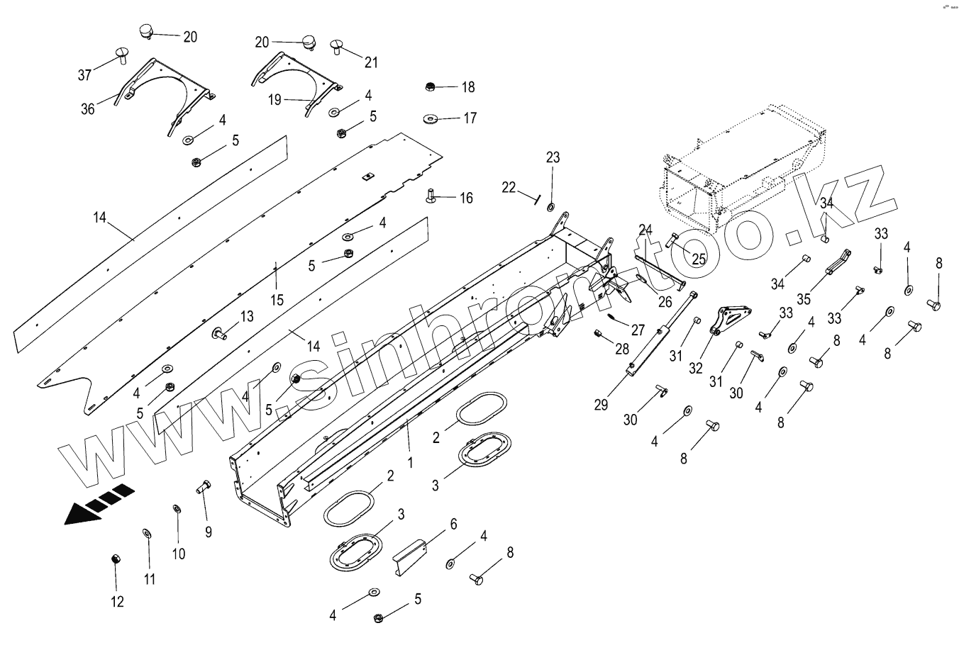 Каталог запасных частей к технике: KRONE BIG-X-630. Discharge chute extension 12/14-row