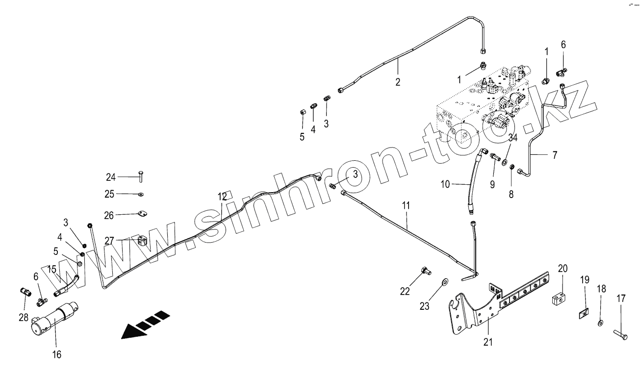 Каталог запасных частей к технике: KRONE BIG-X-630. Hydraulics - pressure lines - front