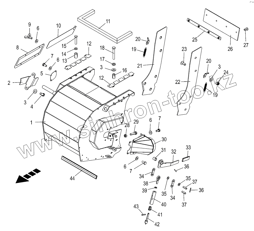 Каталог запасных частей к технике: KRONE BIG-X-630. Discharge accelerator housinge