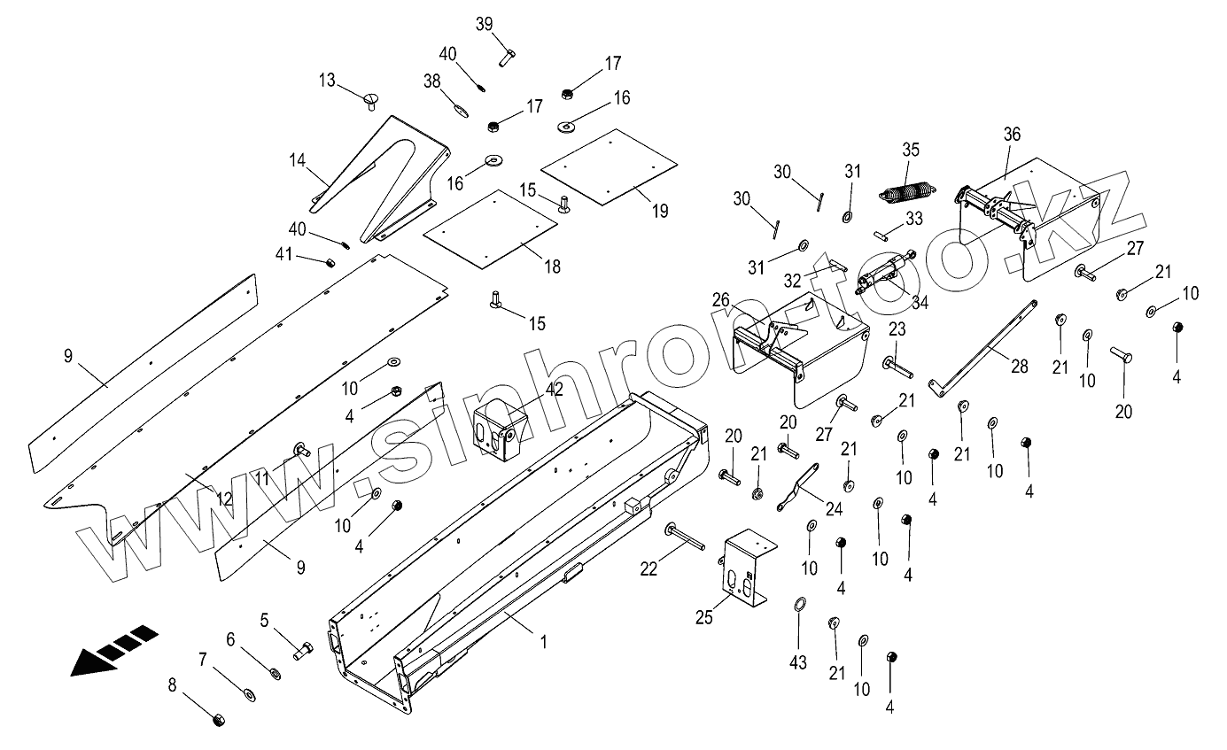 Каталог запасных частей к технике: KRONE BIG-X-630. Discharge flap-end piece -8 rows