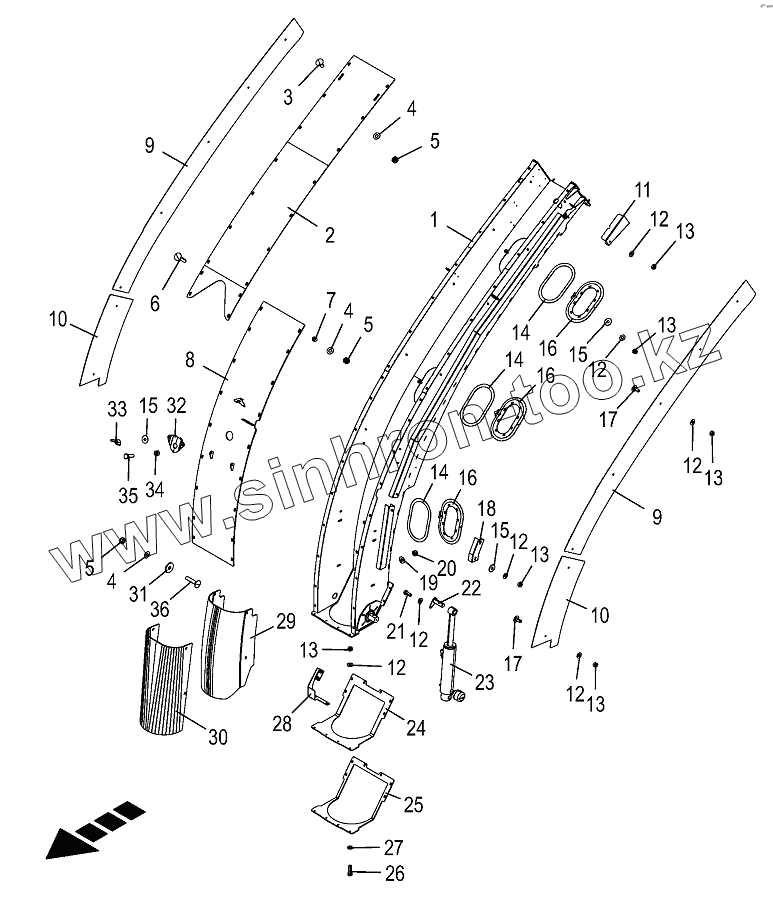 Каталог запасных частей к технике: KRONE BIG-X-630. Upper discharge chute with wear plates