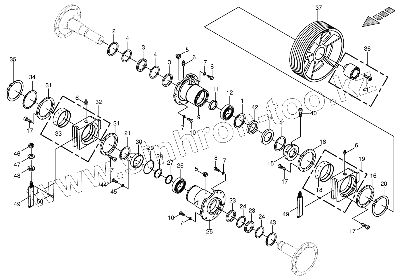 Каталог запасных частей к технике: KRONE BIG-X-650. Chopping drum bearing/counter bearing