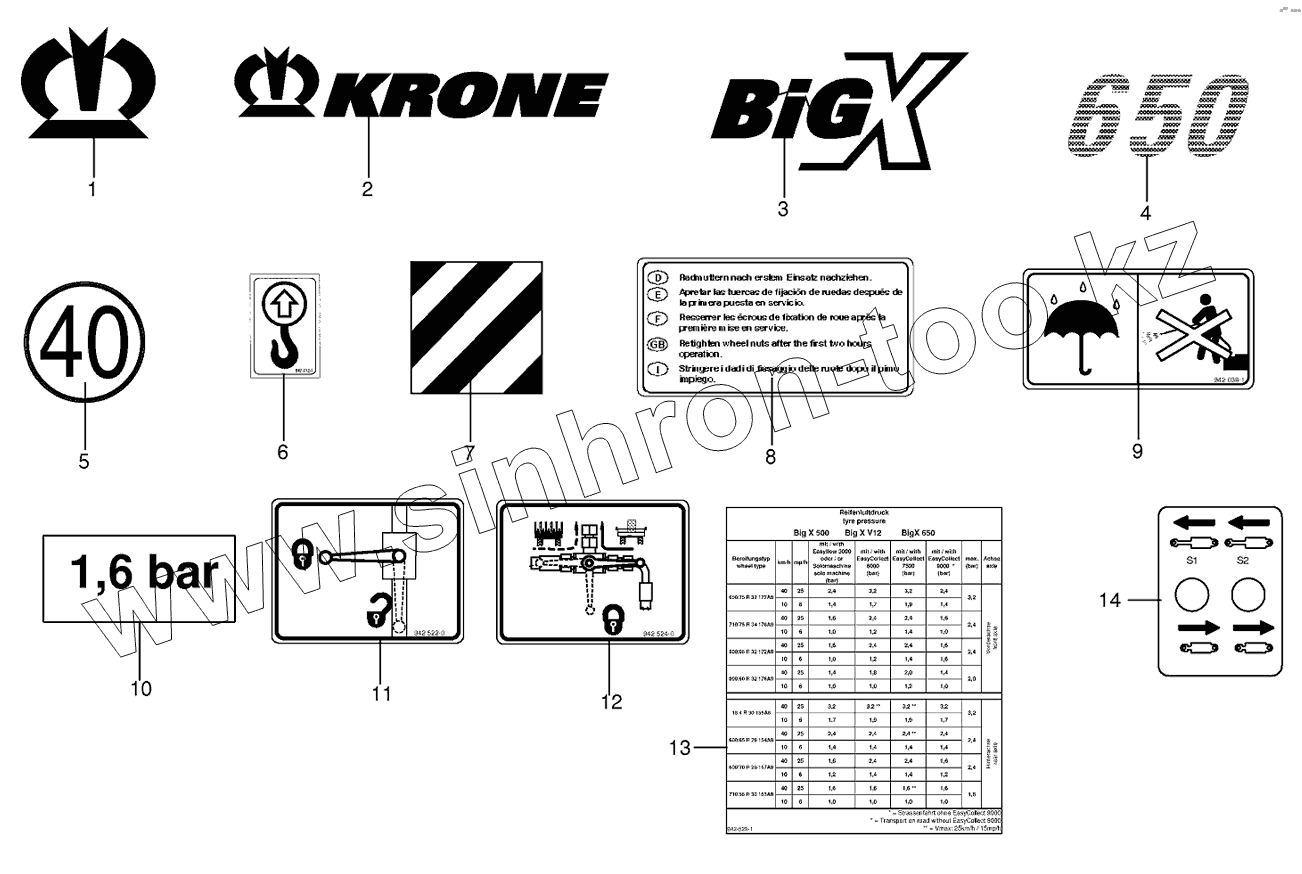 Каталог запасных частей к технике: KRONE BIG-X-650. General information labels