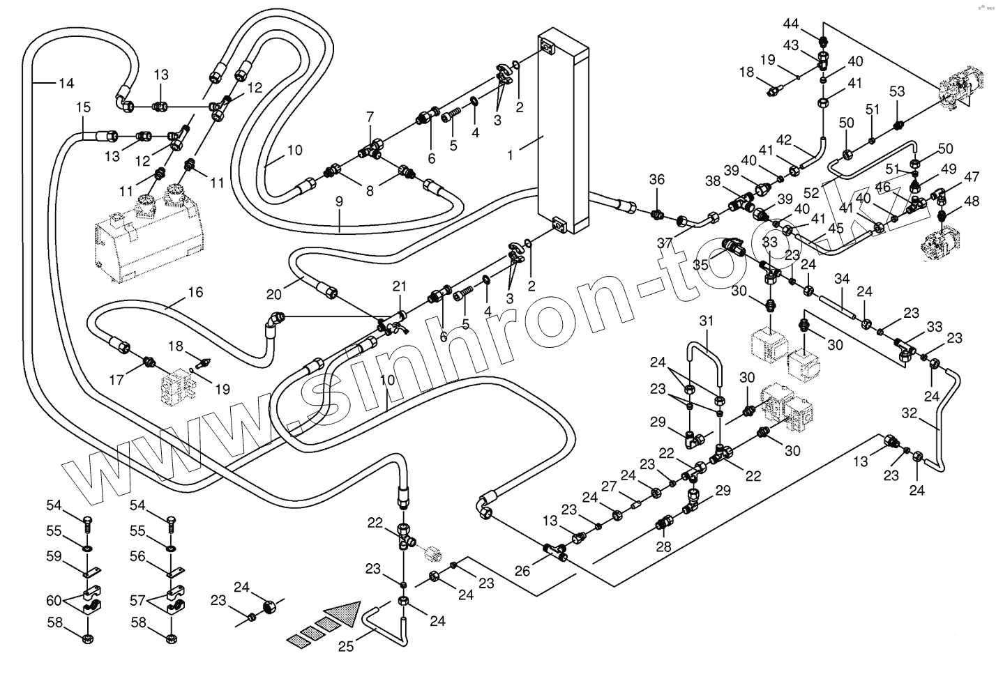 Каталог запасных частей к технике: KRONE BIG-X-650. Housing line/oil cooler
