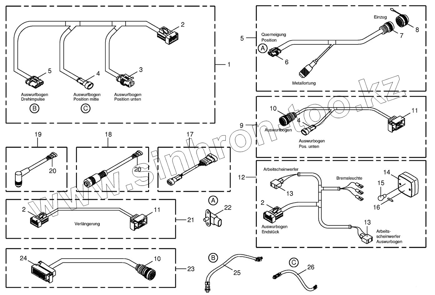 Каталог запасных частей к технике: KRONE BIG-X-650. Several wiring looms
