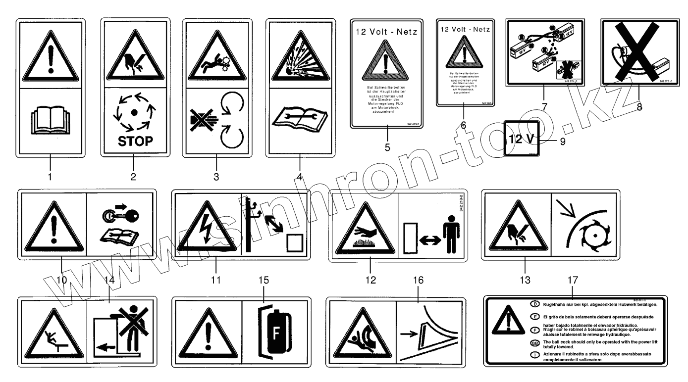 Каталог запасных частей к технике: KRONE BIG-X-650. Warning signs