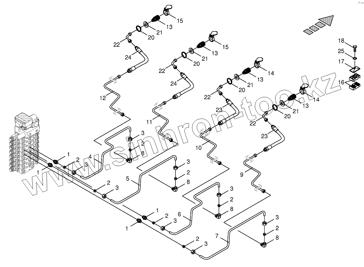Каталог запасных частей к технике: KRONE BIG-X-650. Hydraulics - front attachment