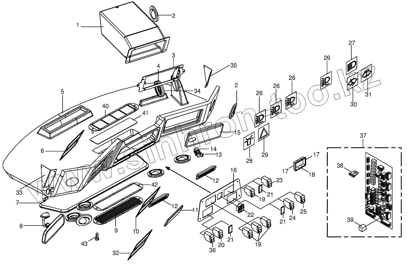 Каталог запасных частей к технике: KRONE BIG-X-650. Сab - control panel (roof) / circuit board