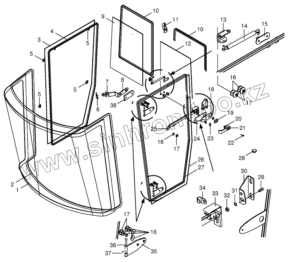 Каталог запасных частей к технике: KRONE BIG-X-650. Сab - glazlng