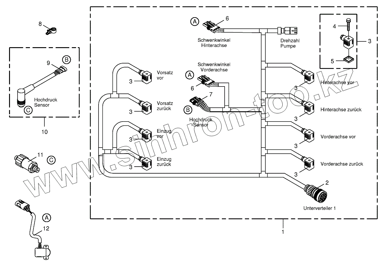 Каталог запасных частей к технике: KRONE BIG-X-650. Wiring loom - hydraulic pumps