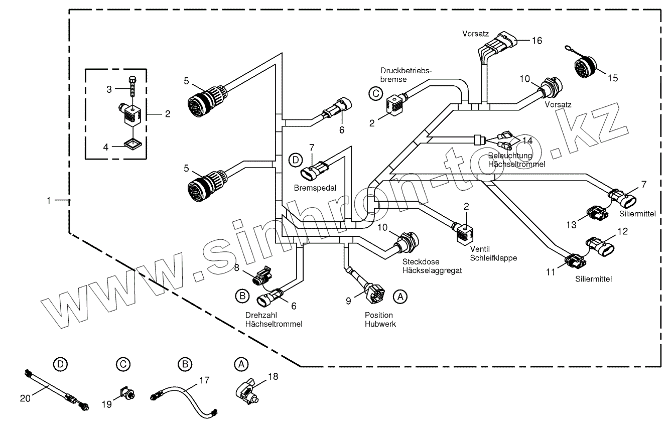 Каталог запасных частей к технике: KRONE BIG-X-650. Wiring loom conn. chopping drum 502,503
