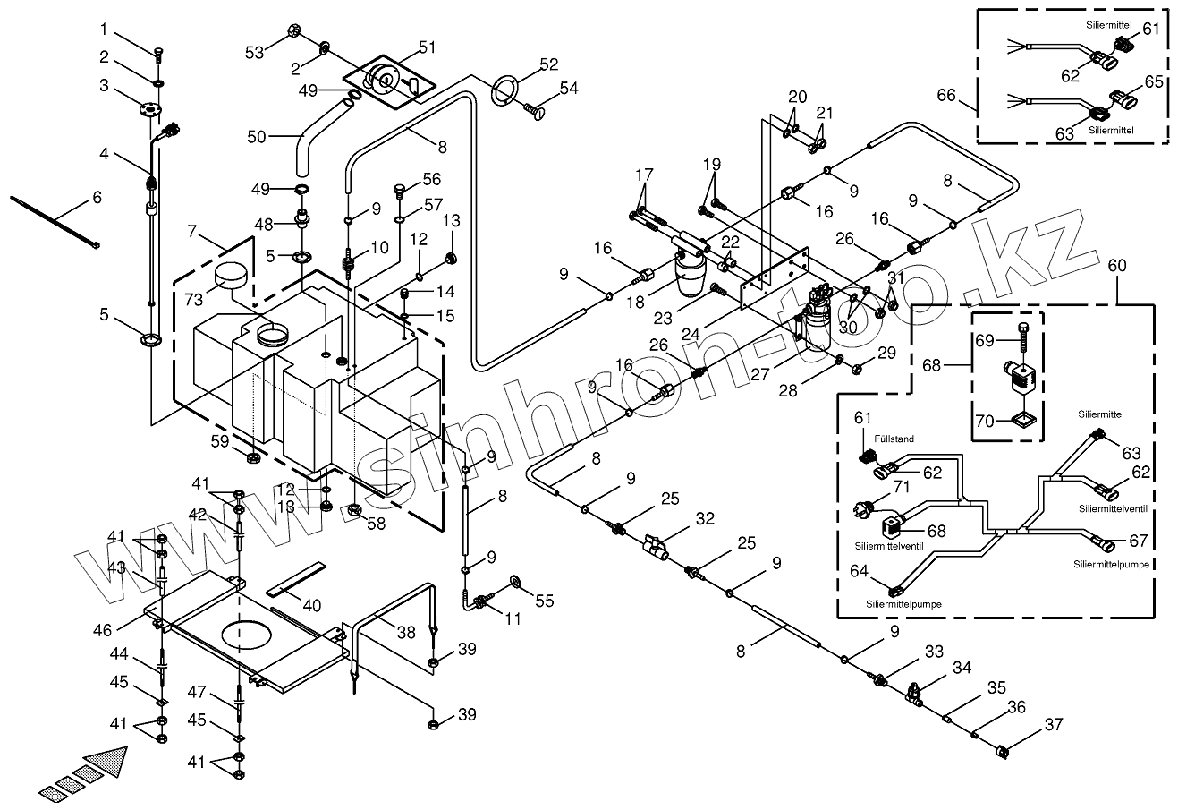 Каталог запасных частей к технике: KRONE BIG-X-650. Additional tank for silage agent system